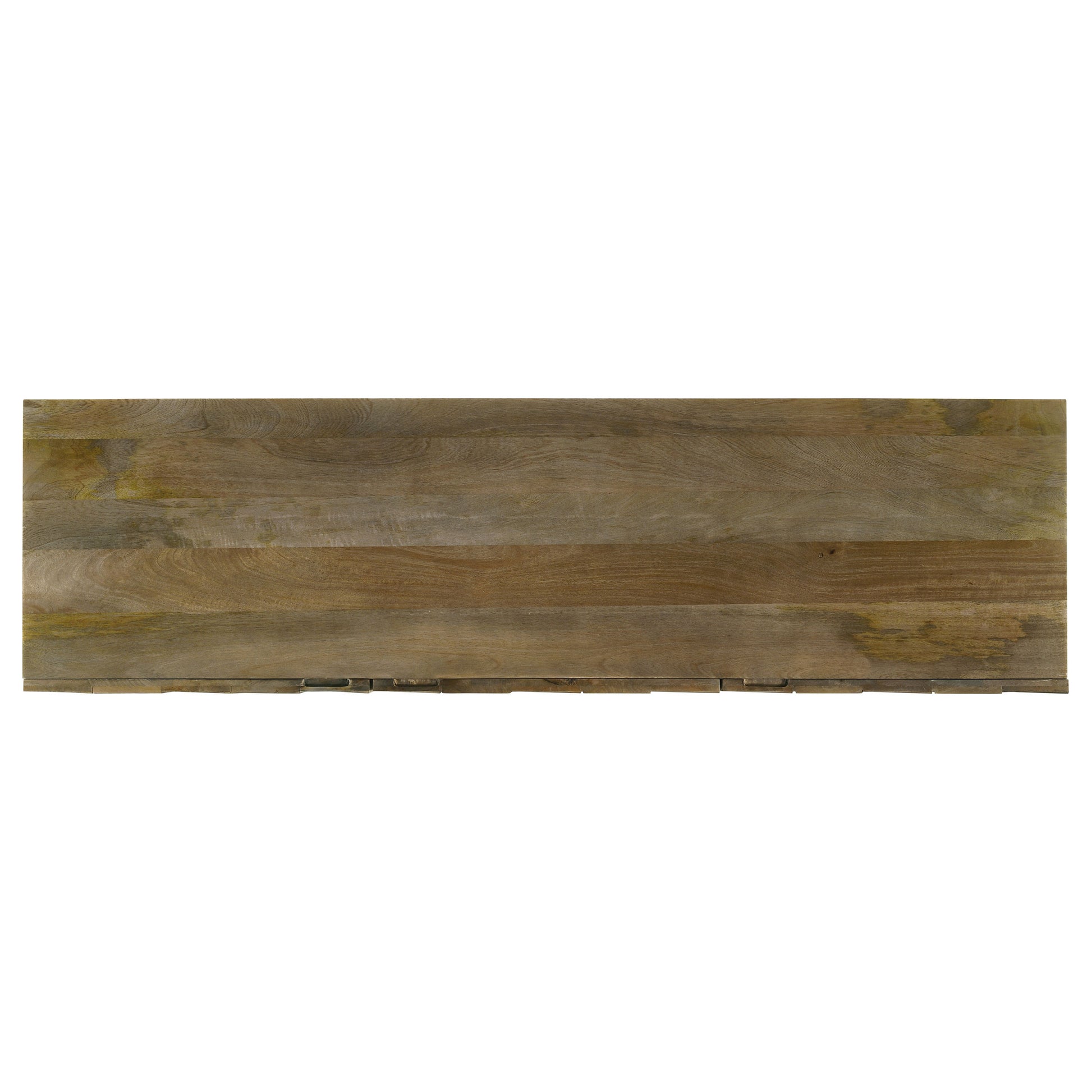 Enhance your dining room with a modern flair using our eco-friendly mango wood dining server. This server showcases a captivating chevron pattern on the door front, adding a touch of character and style to your space. With two adjustable shelves, it provides ample storage for your dining essentials, allowing you to organize and display items with ease.