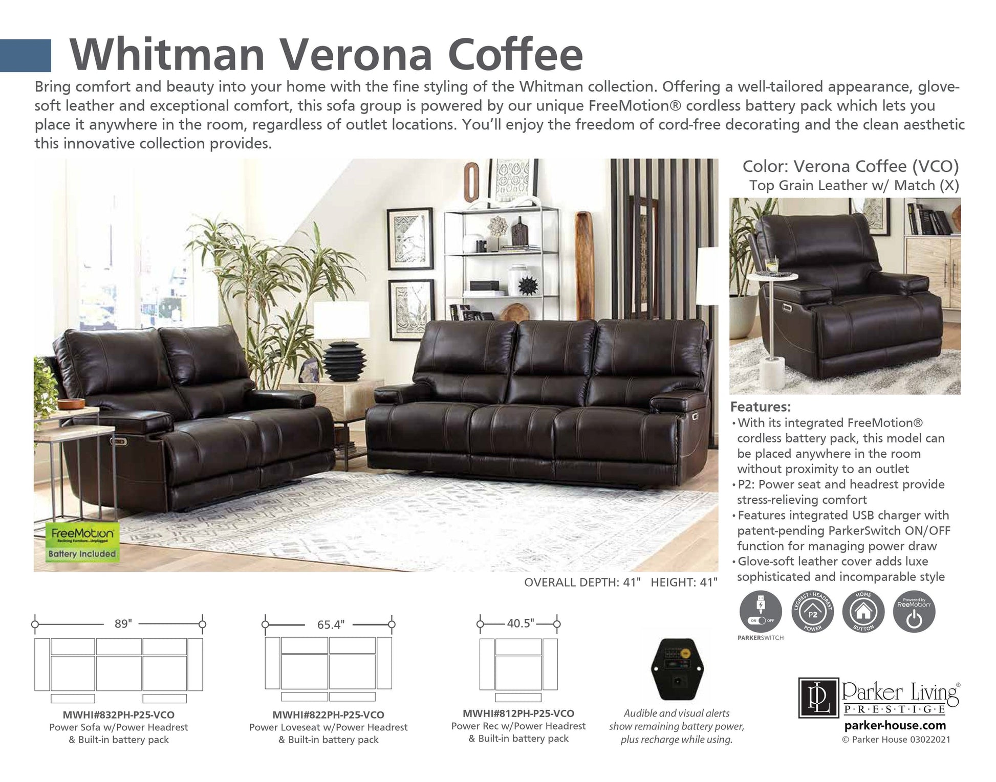 WHITMAN - VERONA COFFEE - POWERED BY FREEMOTION POWER RECLINING COLLECTION