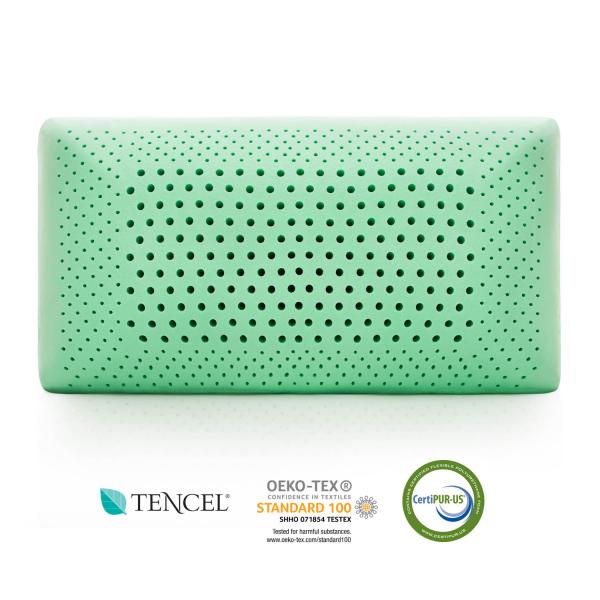New ActiveDough® foam offers the quick-response feel and superior support of latex, plus the just-right cushion and contouring relief of memory foam for a unique feel that is loved by sleepers of all styles and preferences. Infused with all-natural peppermint oil, this rejuvenating pillow provides a clean and refreshing scent that promotes clear breathing and a calm sleep environment. Designed with zoned technology to relieve pressure points, this pillow has larger holes in the center of the pillow to cradle your head and smaller holes around the perimeter to support your neck. This silky soft pillow is topped with a breathable TENCEL™ mesh cover that regulates temperature for all-season comfort. For every pillow purchased, the Malouf Foundation will make a donation to support child survivors of sex trafficking because we believe every child deserves freedom, justice, dignity, and a safe home.